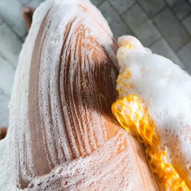Made from durable, porous nylon that dries quickly, minimizing bacterial growth and outperforming traditional loofahs and washcloths. -