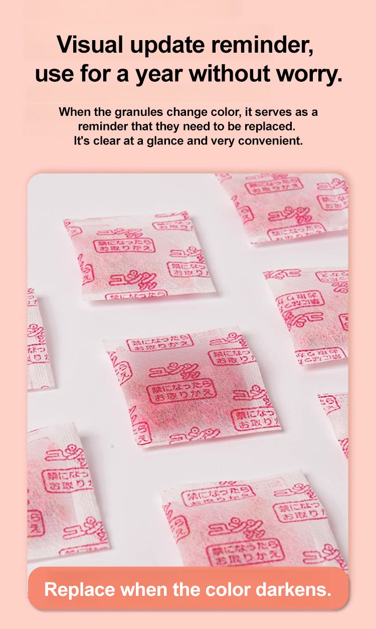 Please replace the camphor balls when the pink particles turn purple to ensure continued effectiveness.